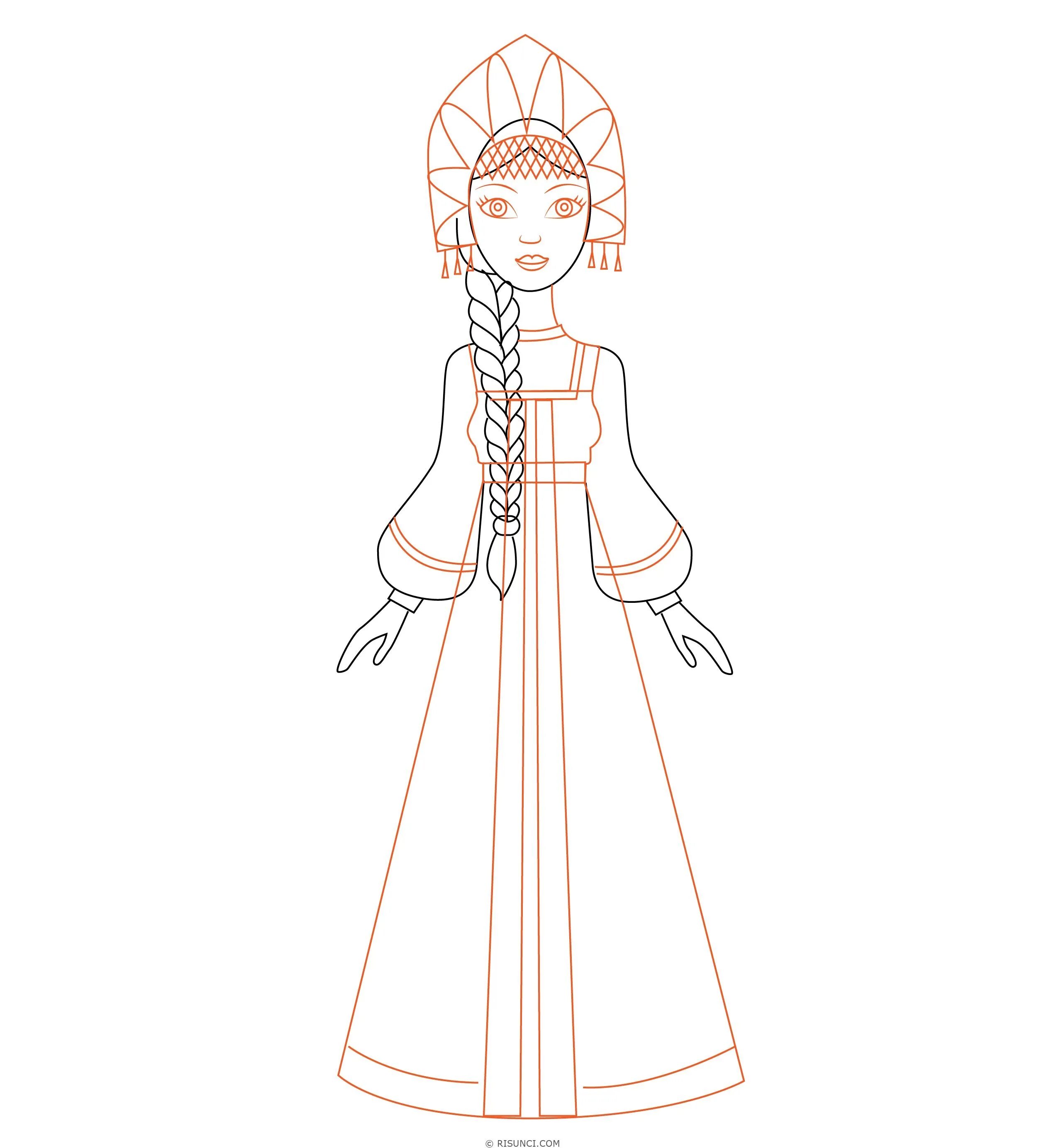 Девушка в русском народном костюме рисунок.