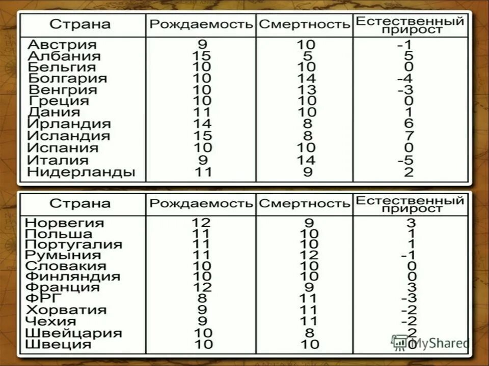 Население зарубежной Европы таблица.