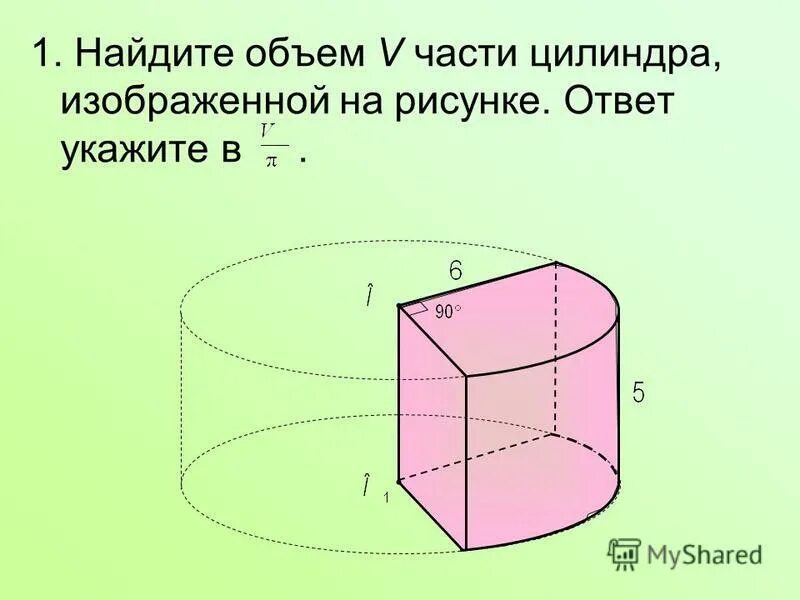 Найдите объем части цилиндра изображенной на рисунке