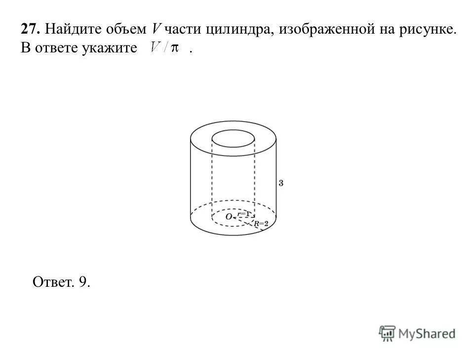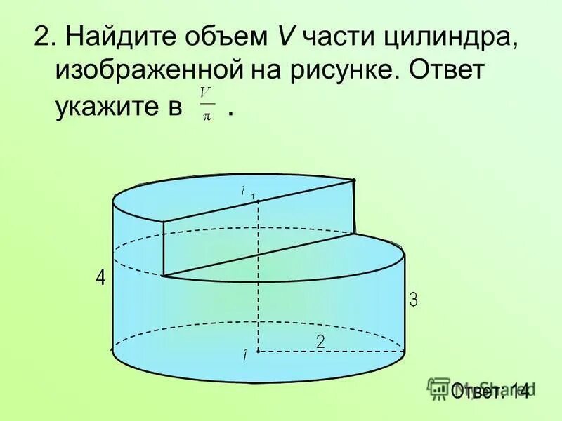 Найдите объем v части цилиндра изображенной на рисунке.