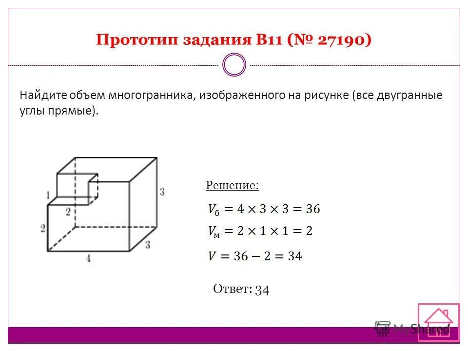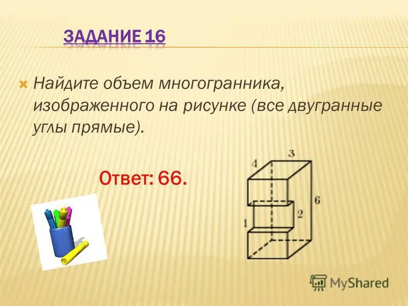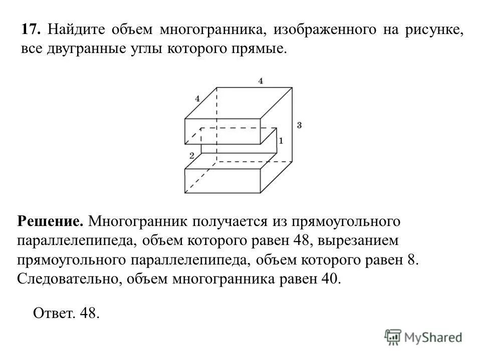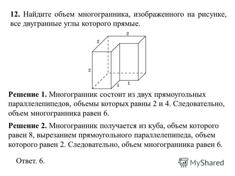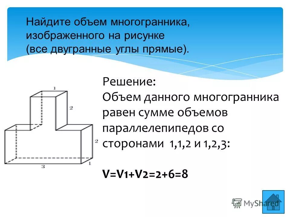 Найдите объем многогранника изображенного на рисунке