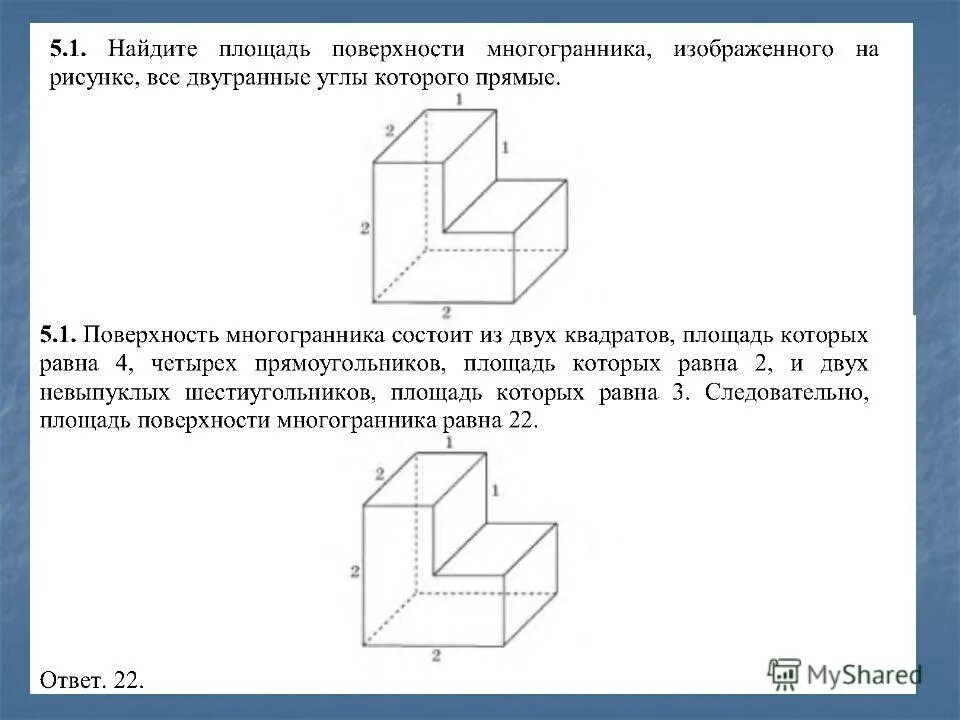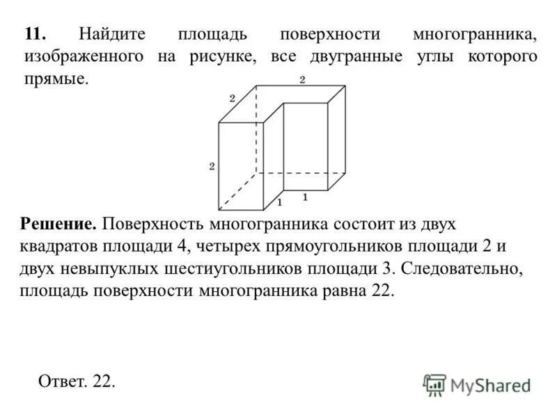 Найдите площадь поверхности многогранника изображенного на рисунке