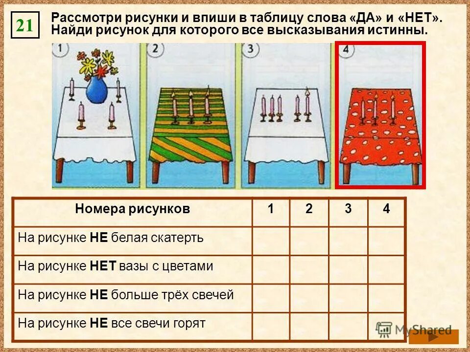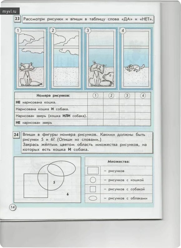 Рассмотри рисунки и впиши в таблицу слова да и нет.