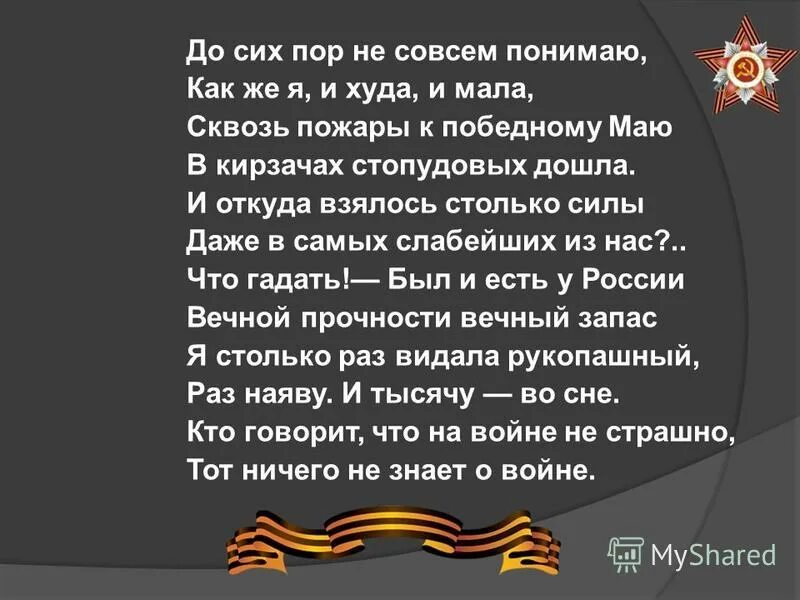 Друнина до сих пор не совсем понимаю как же я и худа и мала.
