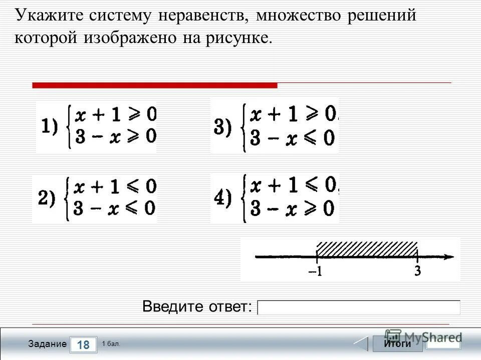 Выбери неравенство множество решений которого изображено на рисунке.
