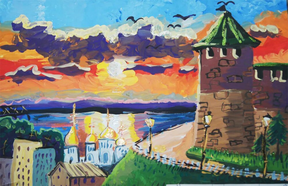 Чкаловская лестница Нижний Новгород рисунок для детей.