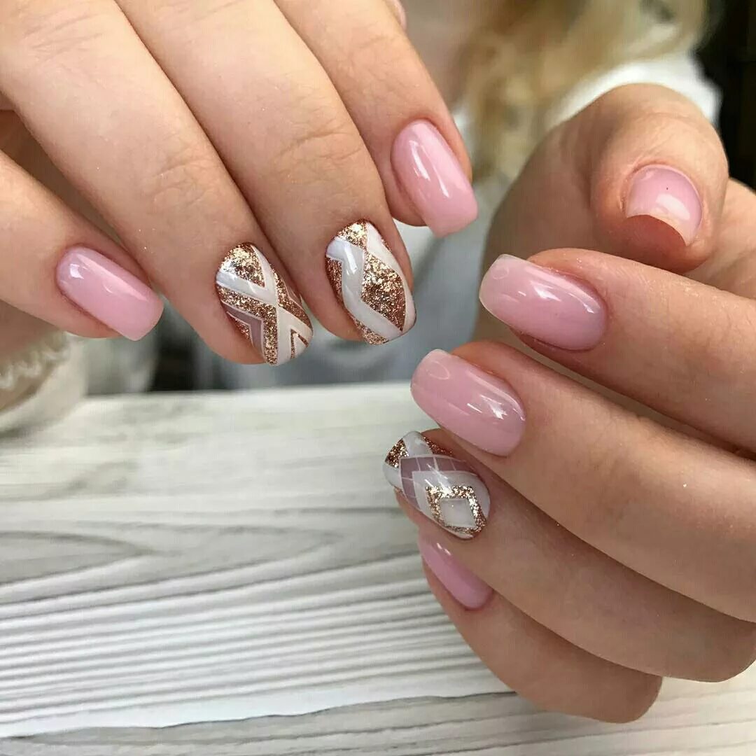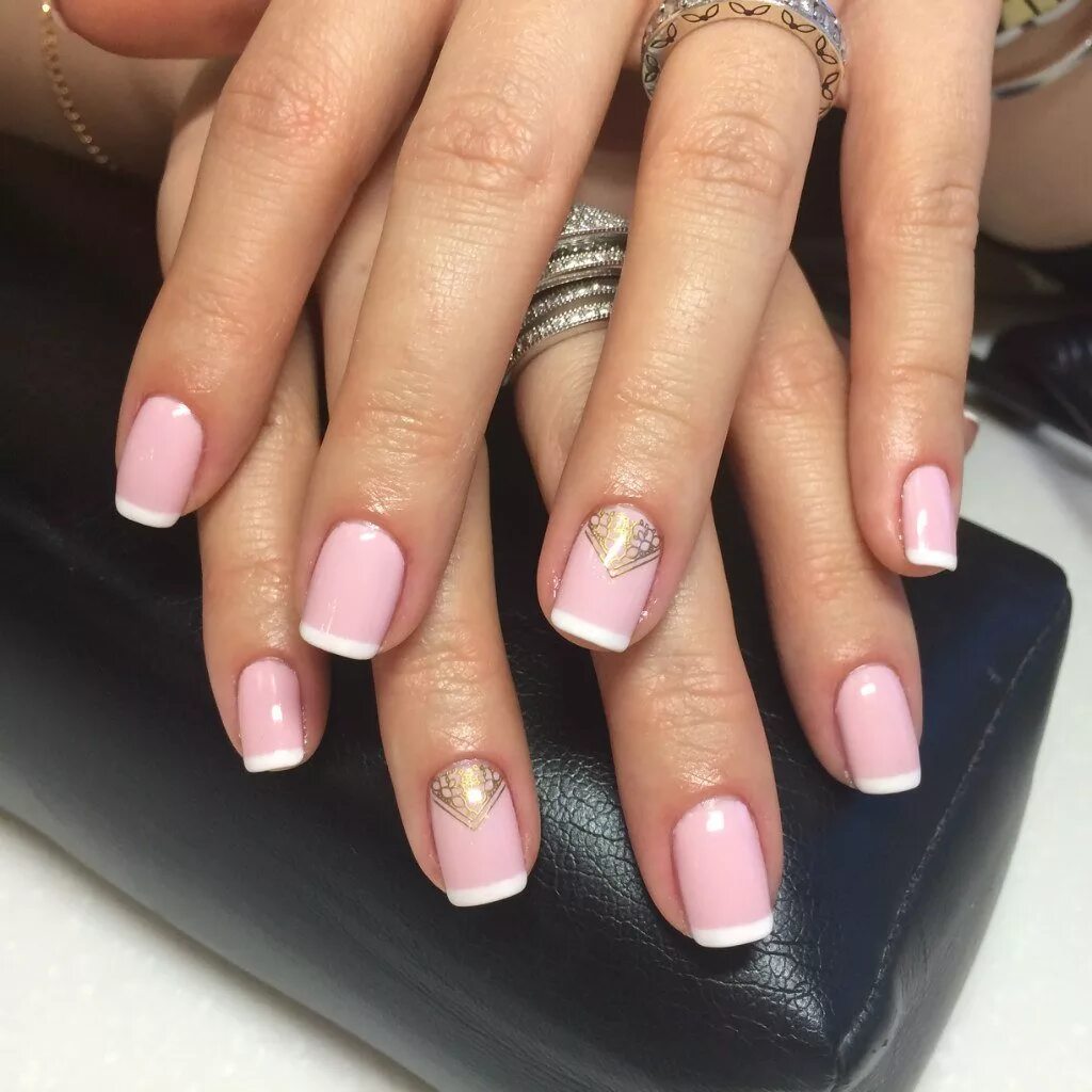 Розовый маникюр на короткие.