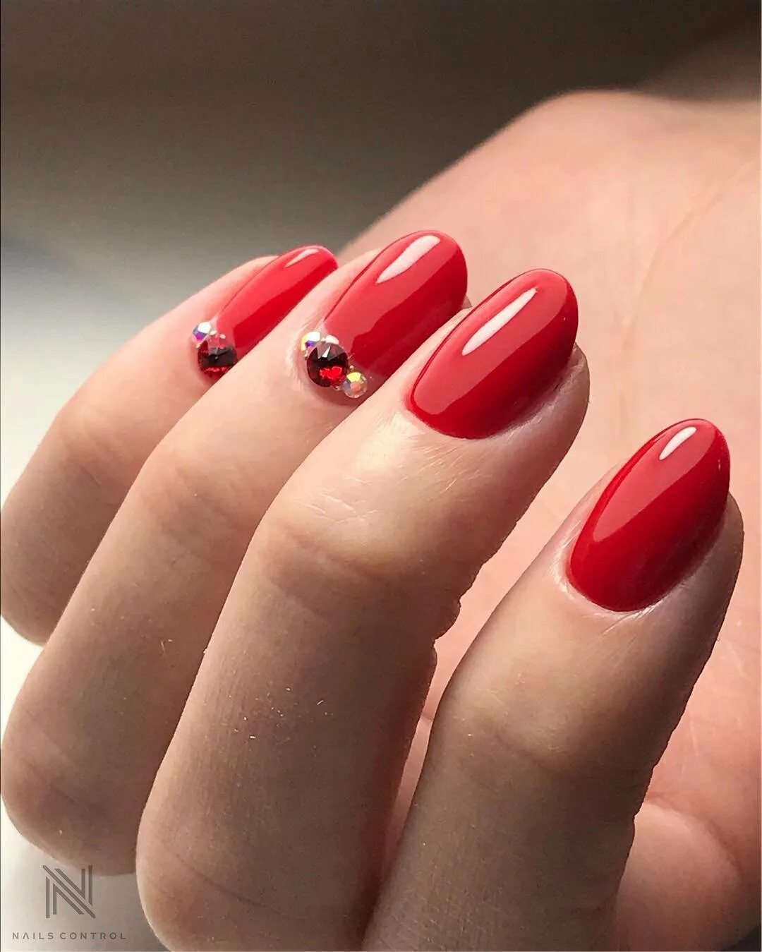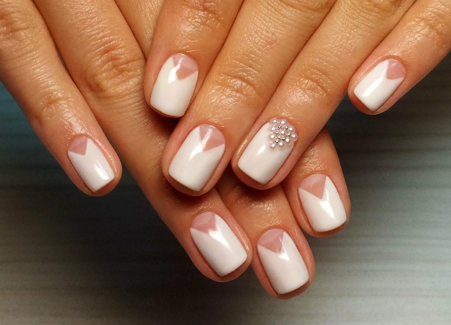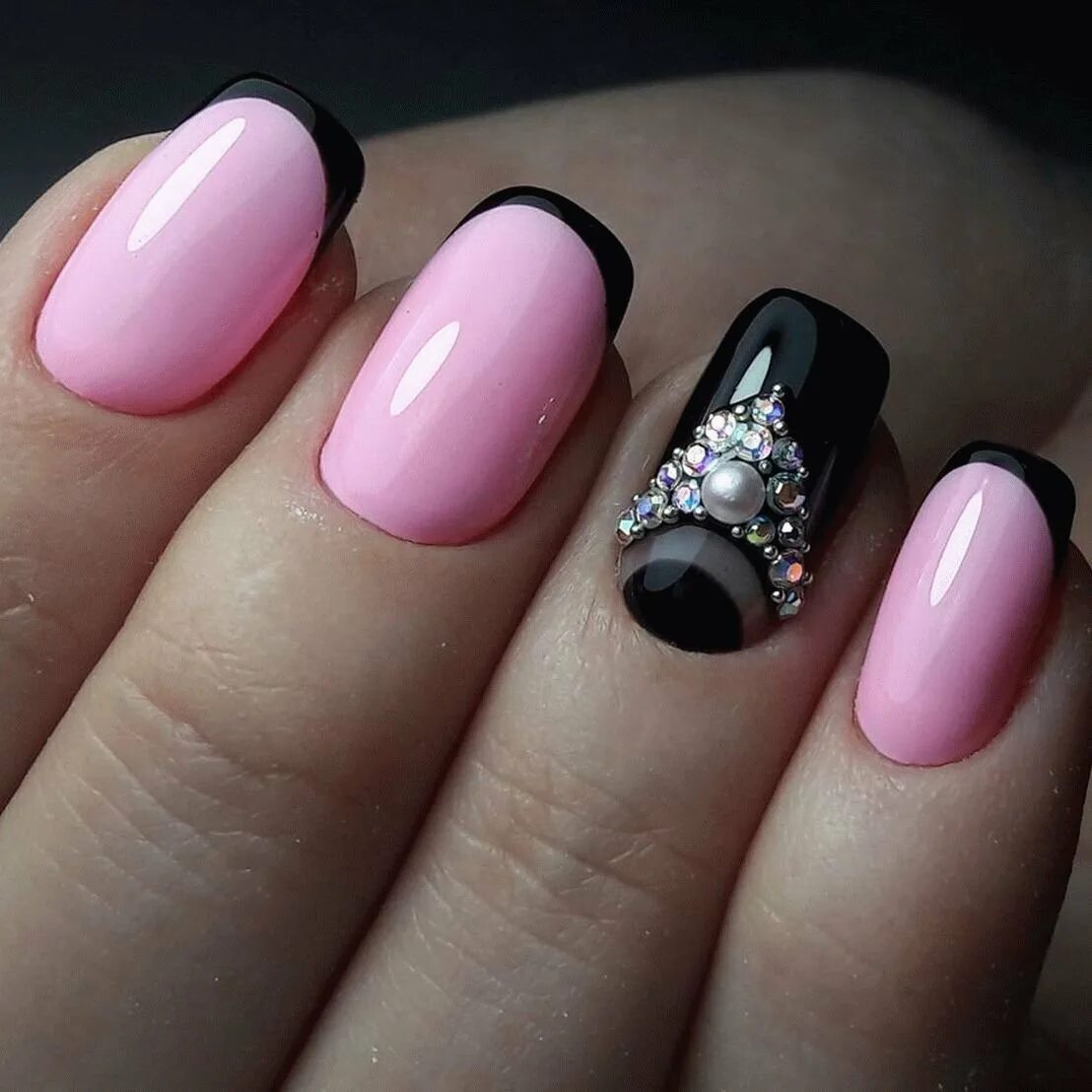 Маникюр со стразами на короткие ногти.