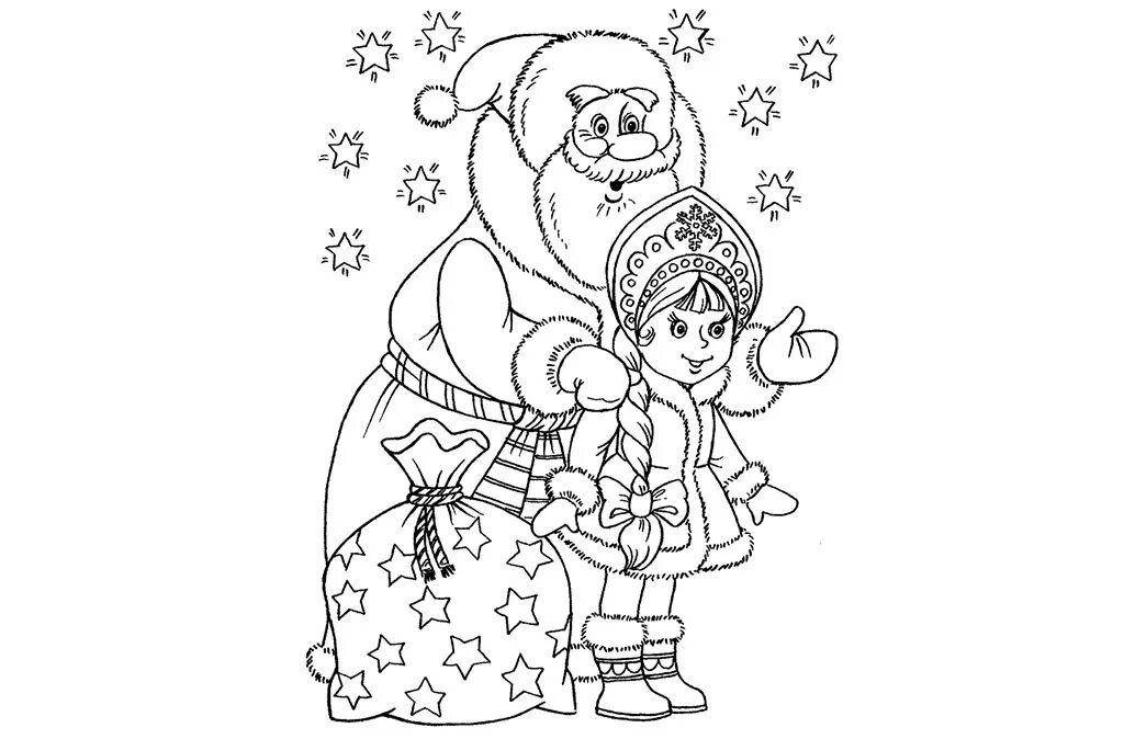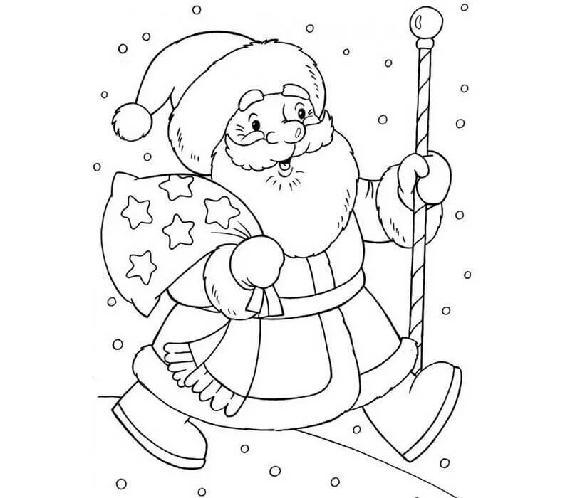 Дед Мороз с елочкой раскраска.