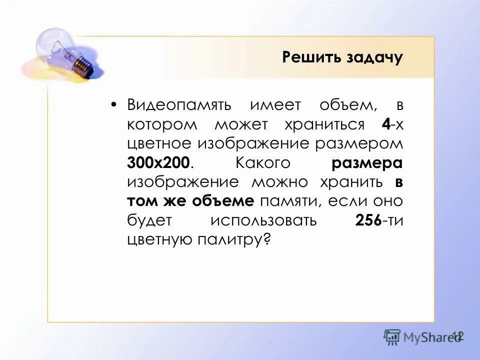 Объем растрового изображения решение задач.