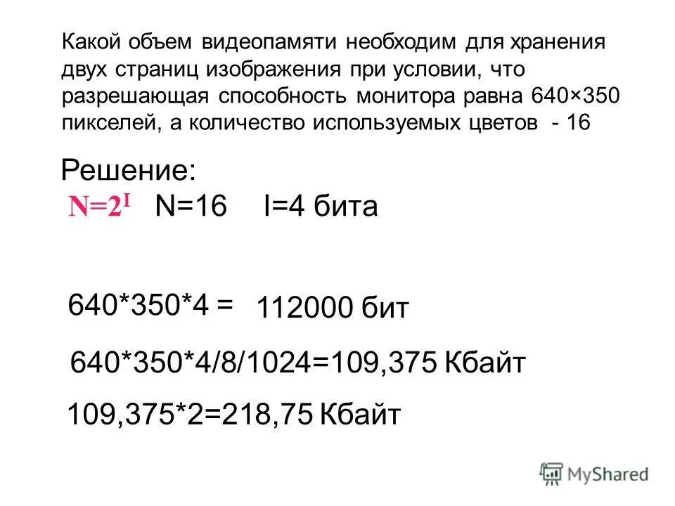 Объем видеопамяти необходимой для хранения графического.