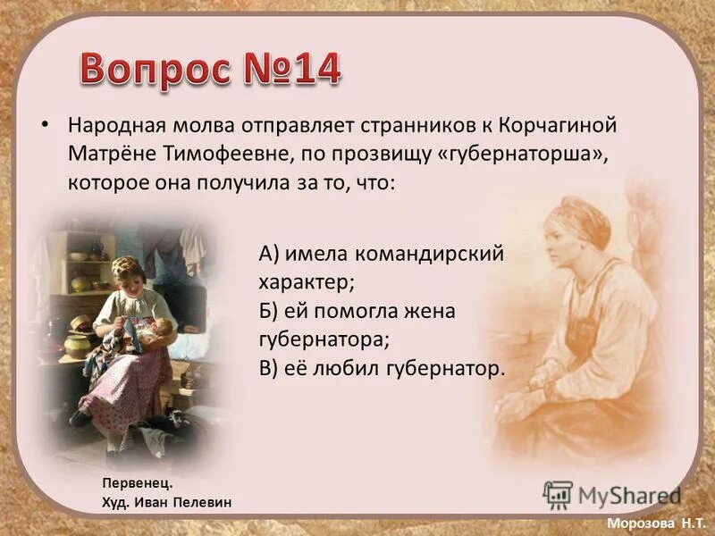 Образ матрёны Тимофеевны Корчагиной.