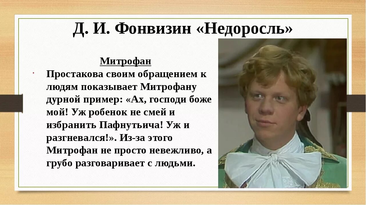 Митрофанушка характеристика.