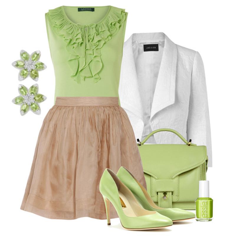 Сочетание бежевого и салатового в одежде.