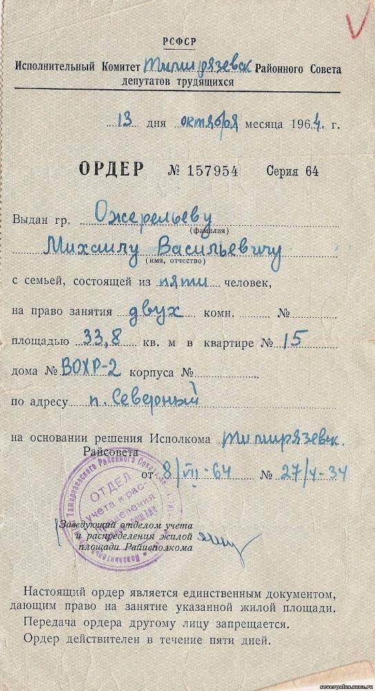 Образец ордера на квартиру фото