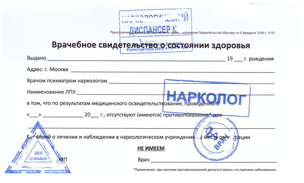 Образец справки от нарколога и психиатра
