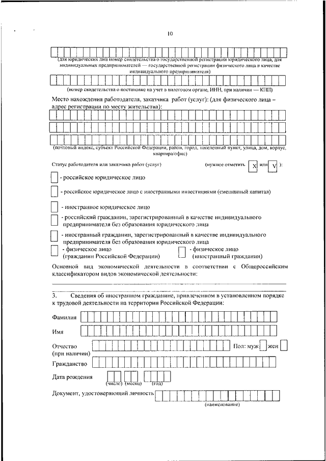 Образец заполнения уведомления о приеме на работу иностранца с рвп