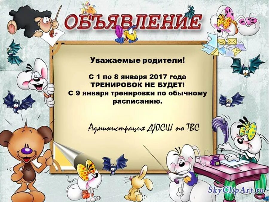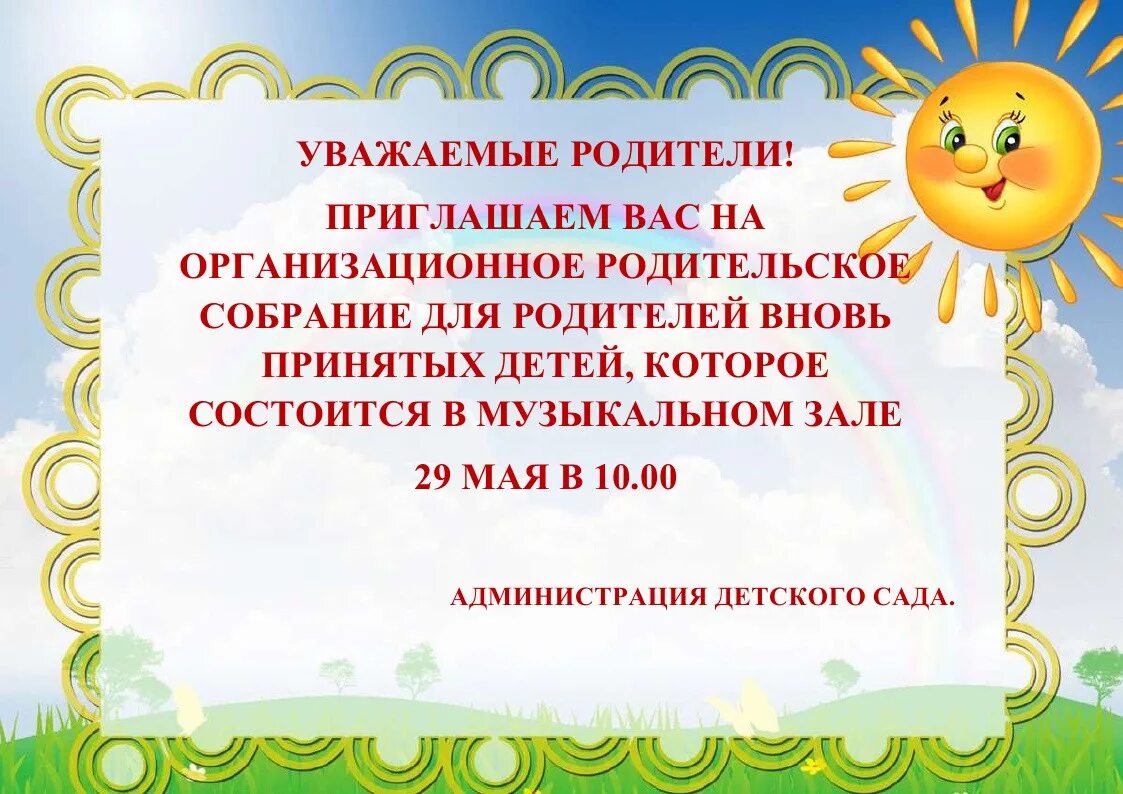 Объявление родителям в детском саду.