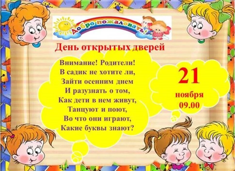 Пригласительные на день открытых дверей в детском саду.