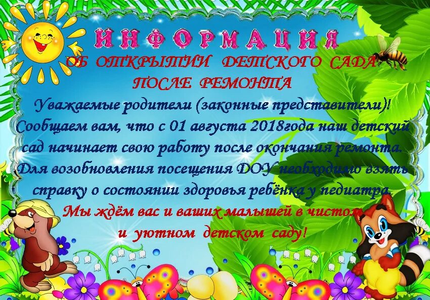 Объявление в детском саду.