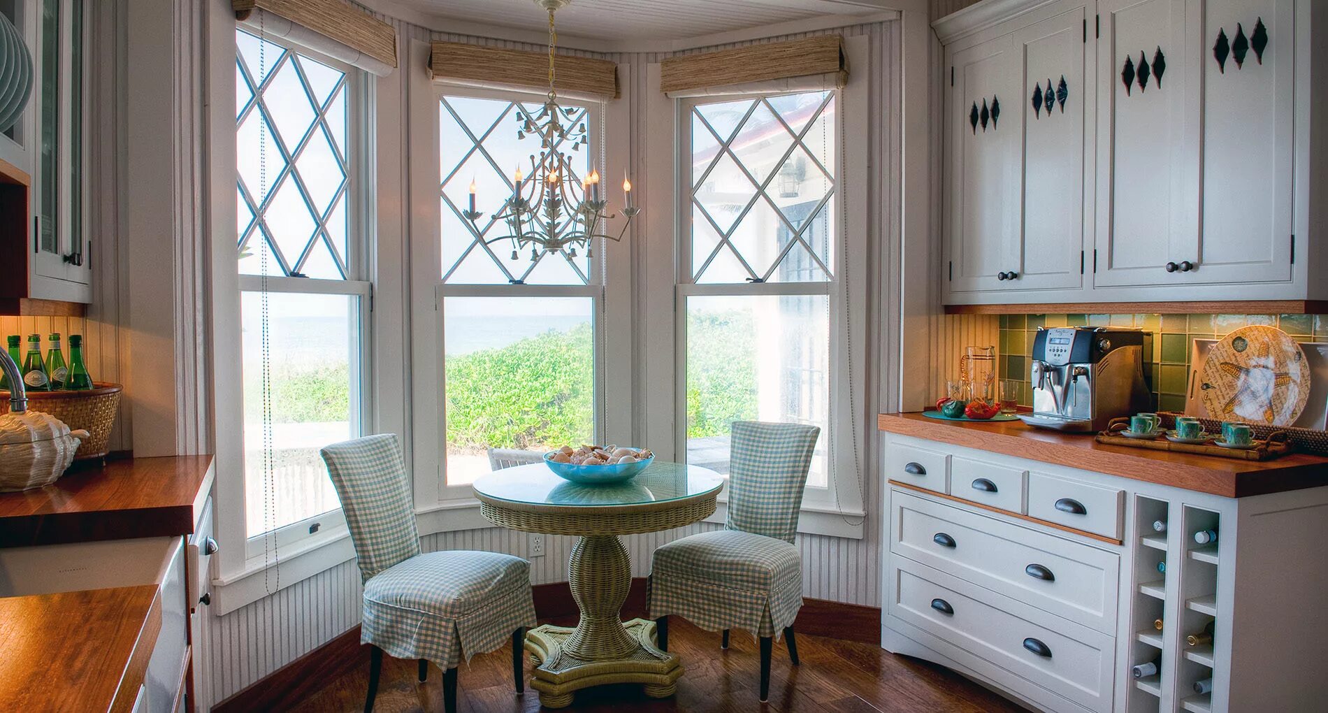 Кухня с витражными окнами.
