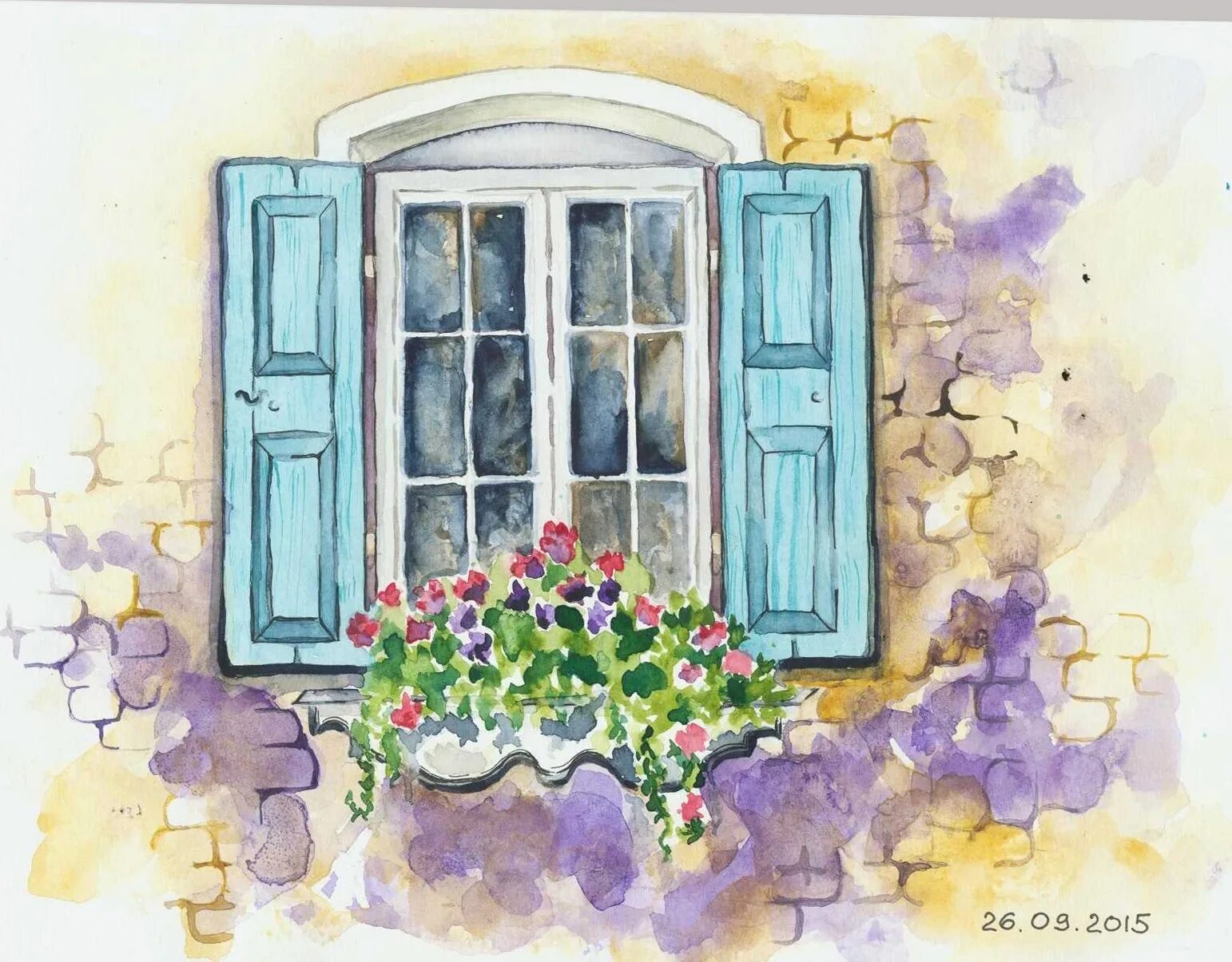 Вид из окна акварелью.