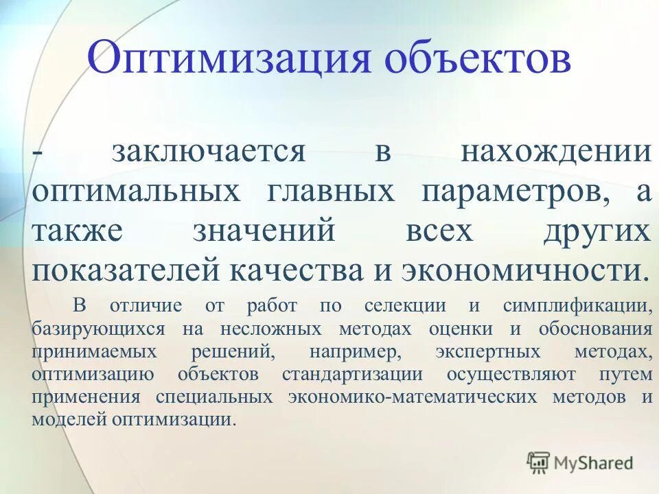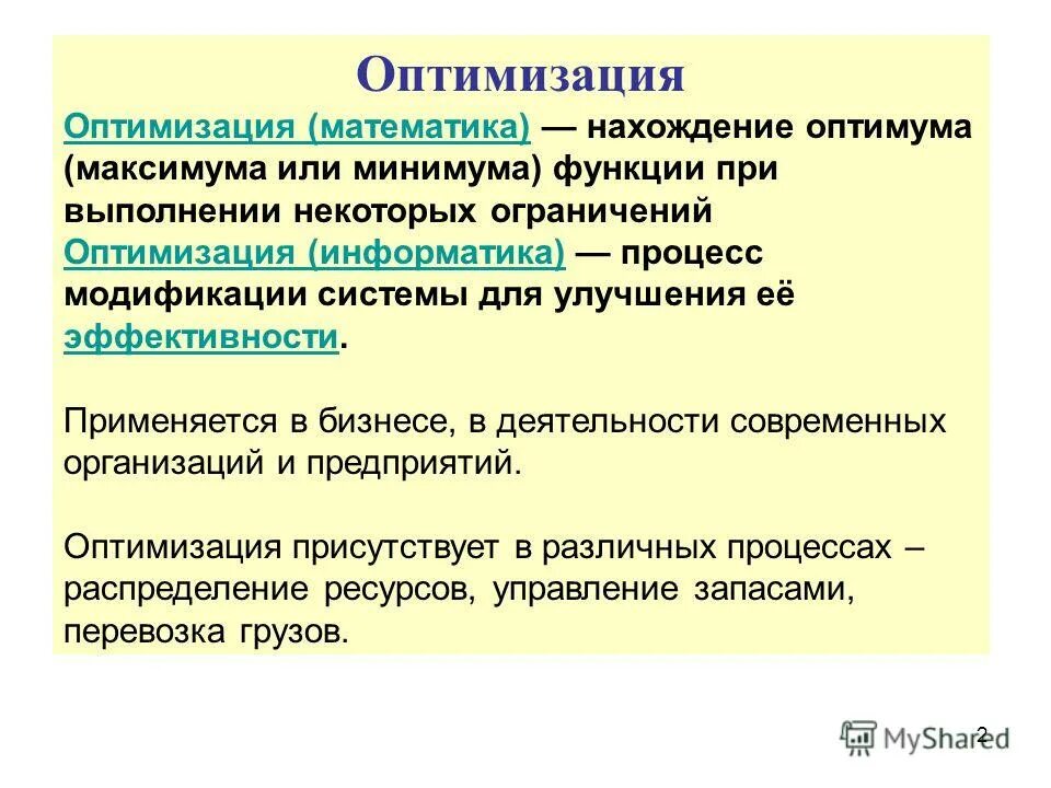 Оптимизация это определение.