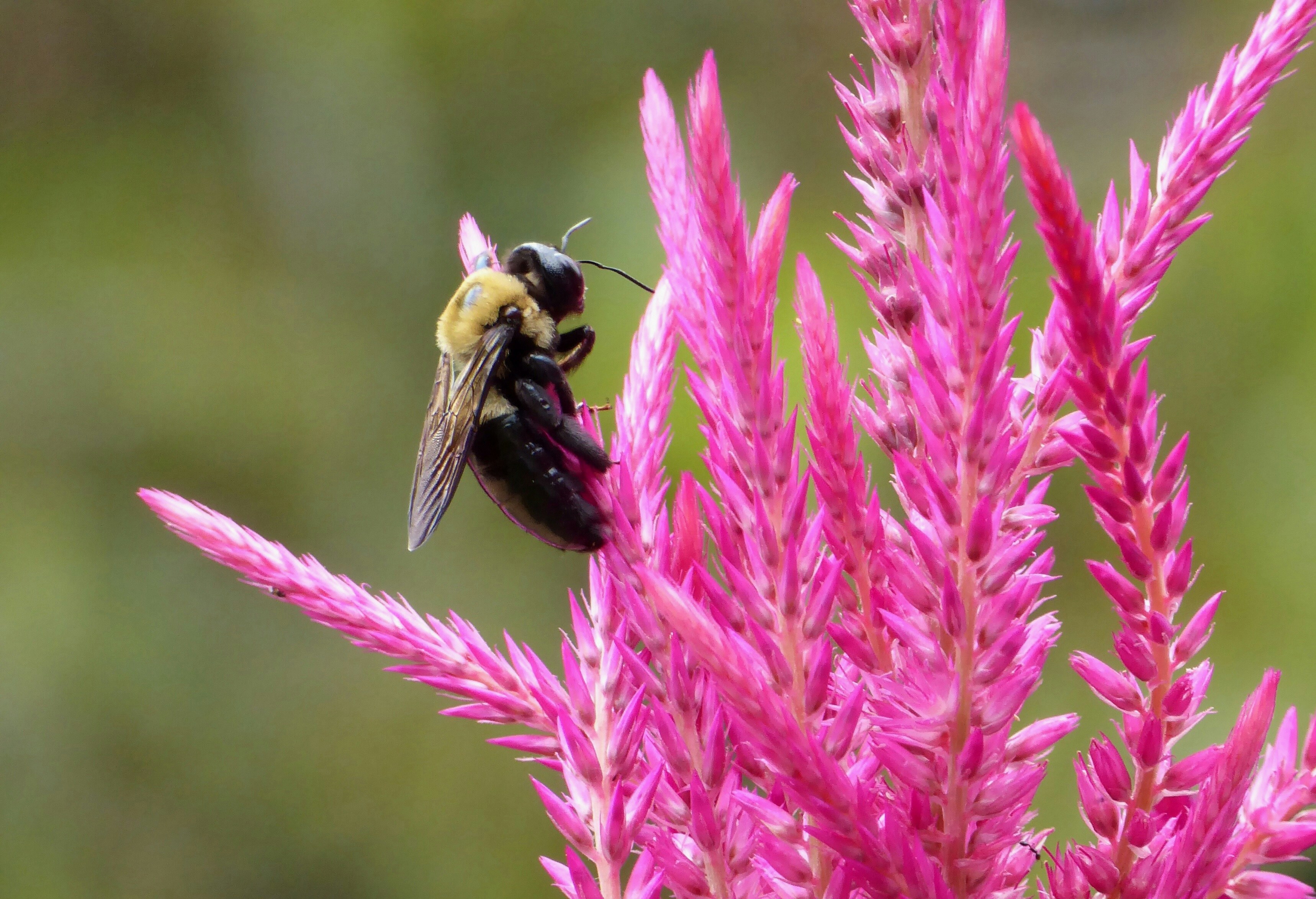 Шмель опыляет цветы.