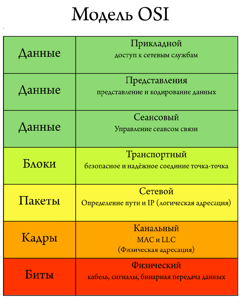 7 Уровней модели osi.