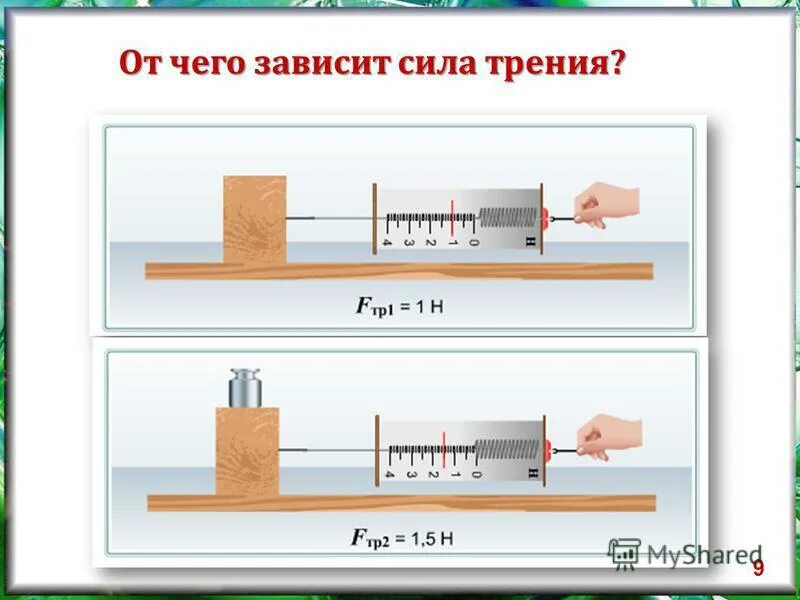 Как сила трения скольжения зависит от веса тела.