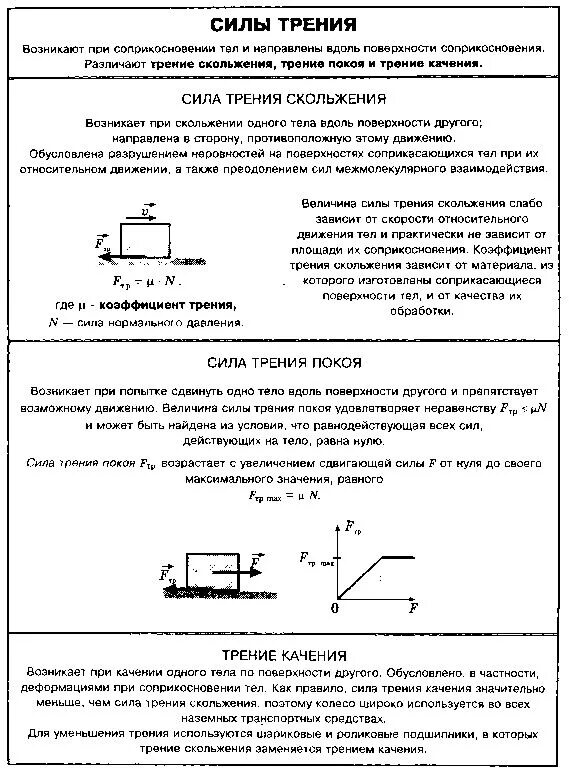 Виды сил трения таблица.