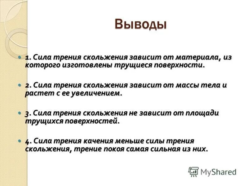Зависимость силы трения от веса тела вывод.