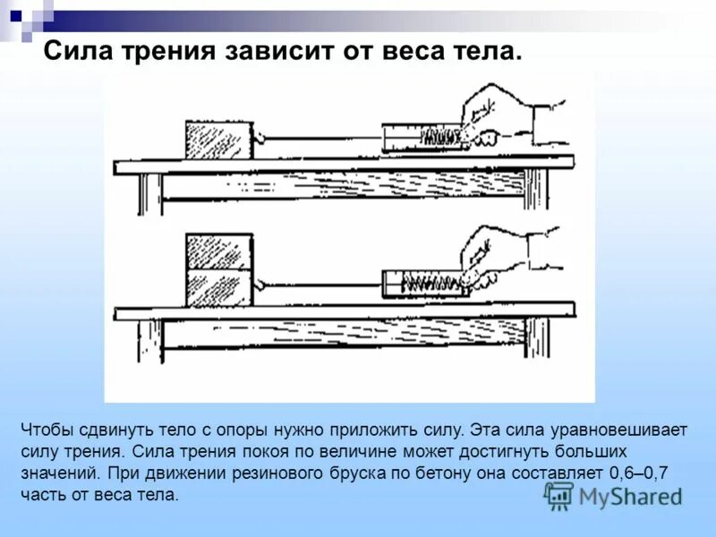 Зависит ли сила трения скольжения от веса тела.