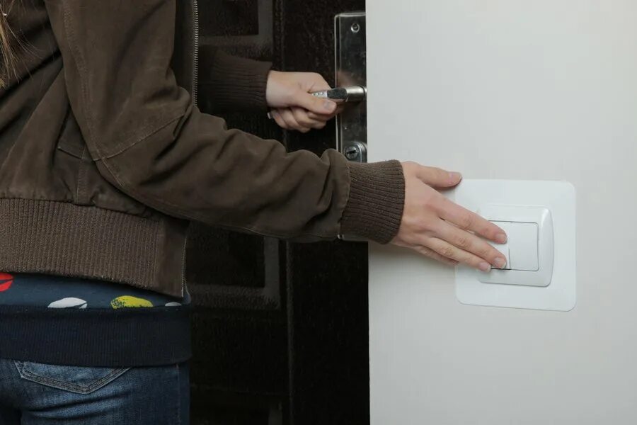 Человек выключает свет.