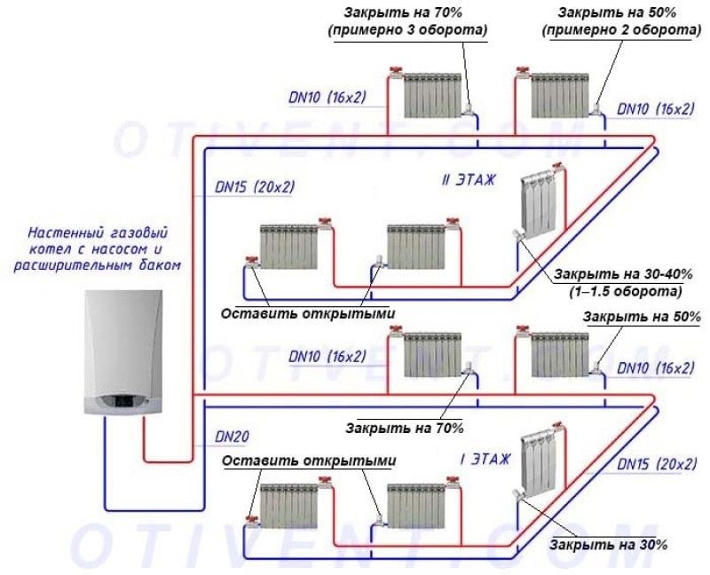 Отопление дома газовым котлом схема разводки труб к батареям частного
