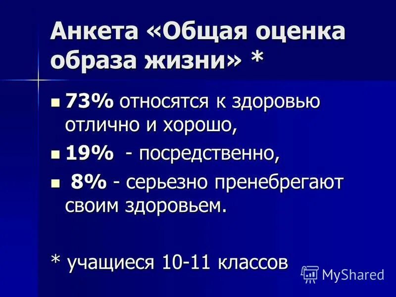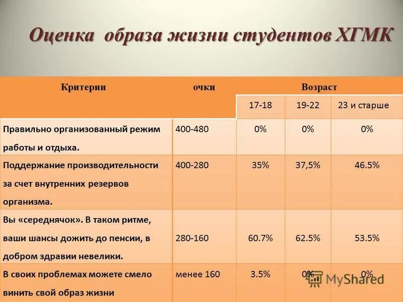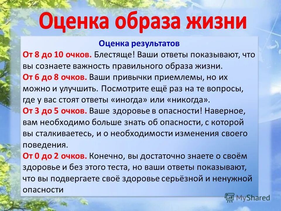 Оценка образа жизни.