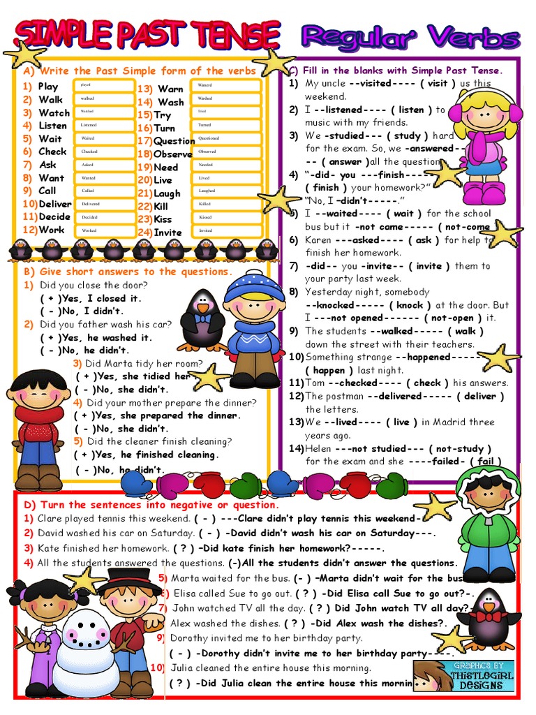 Past simple regular verbs exercises.