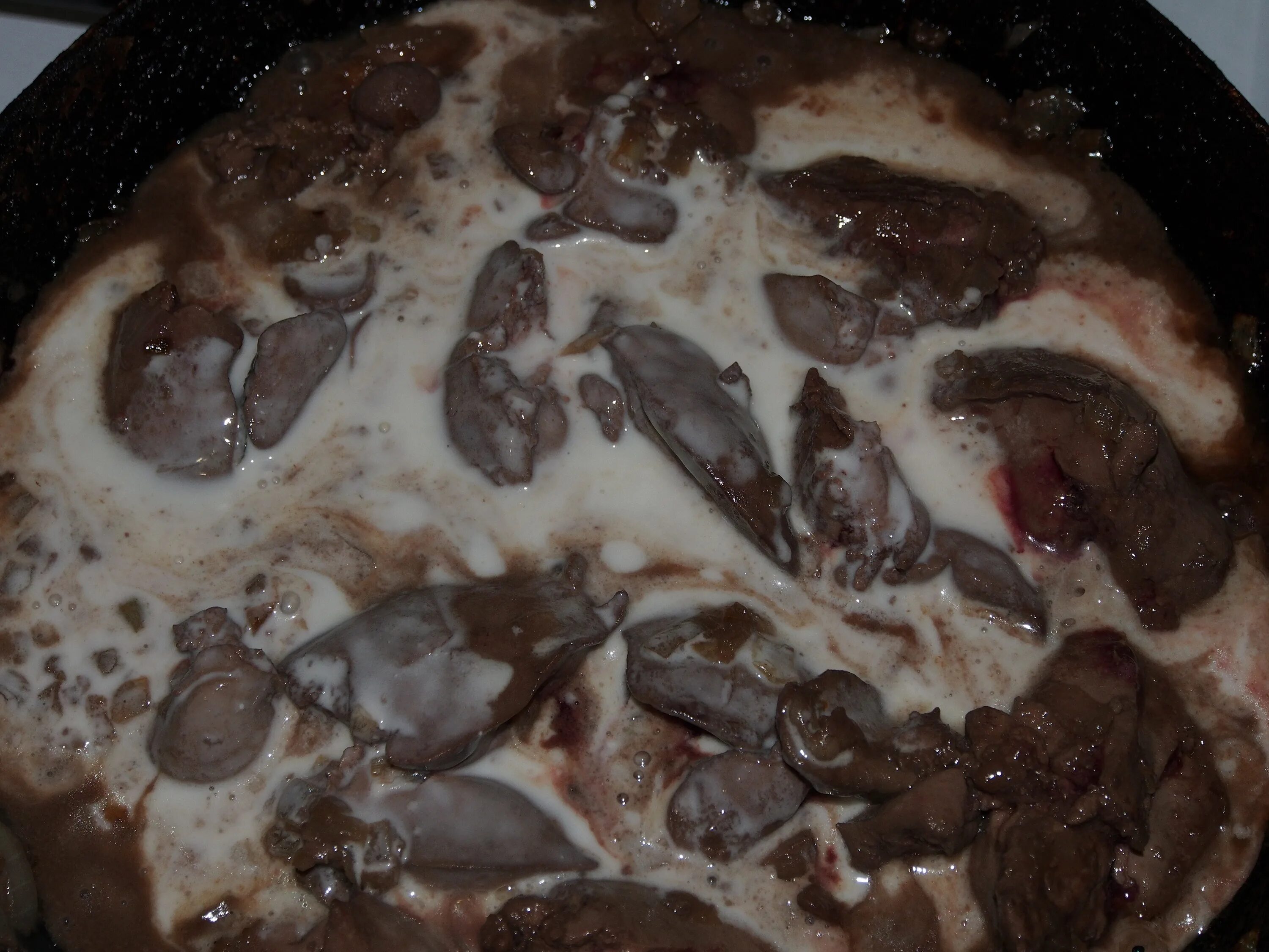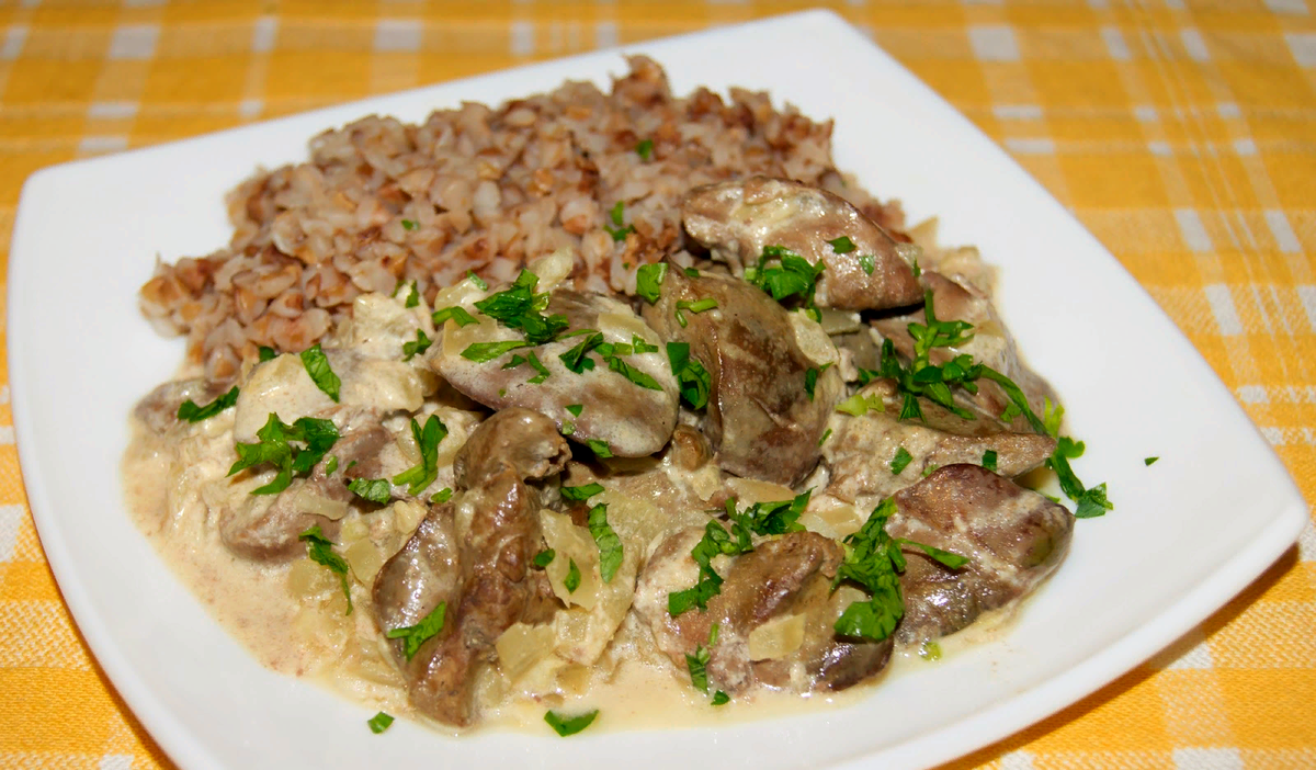Печень куриная в сметанном соусе.