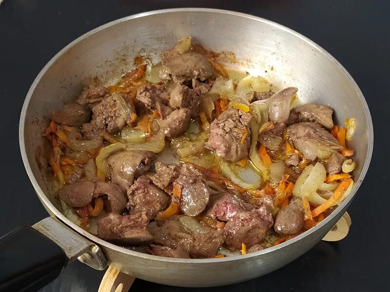 Тушёная печень с луком.