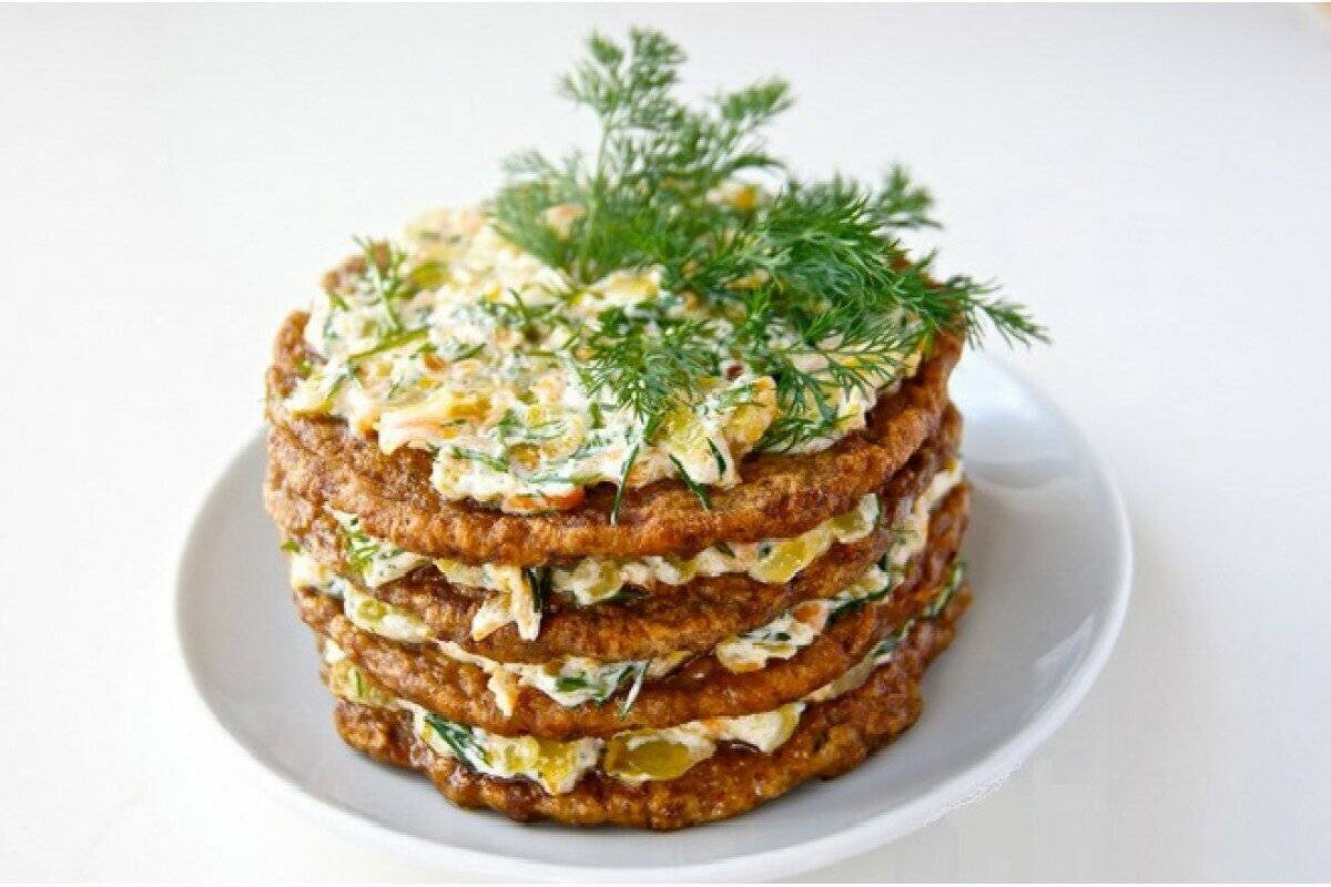 Блинный торт с печеночным паштетом.