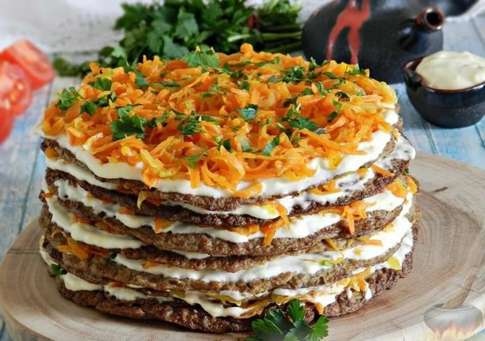 Печеночный торт закусочный.