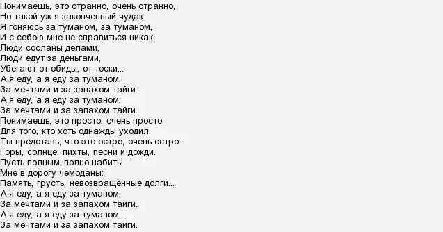 Сиреневый туман текст.