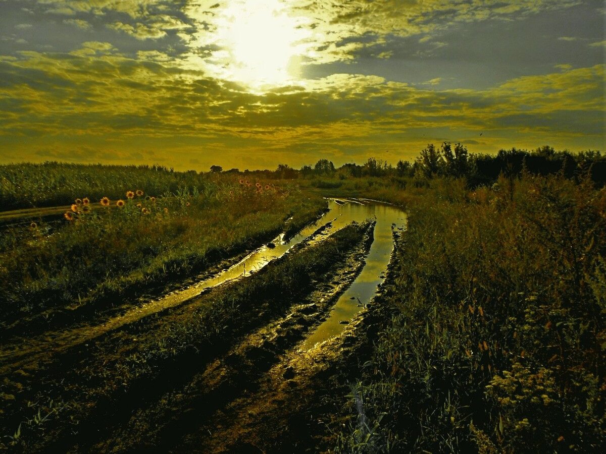Солнце на дороге.