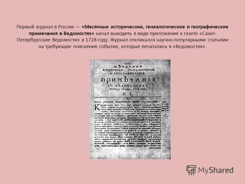 Санкт Петербургские ведомости 1728 года.