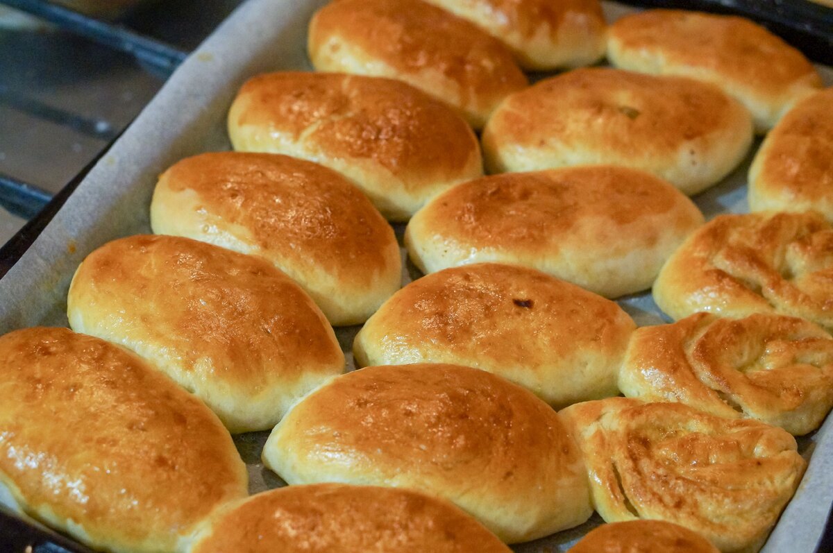 Пышные жареные пирожки.
