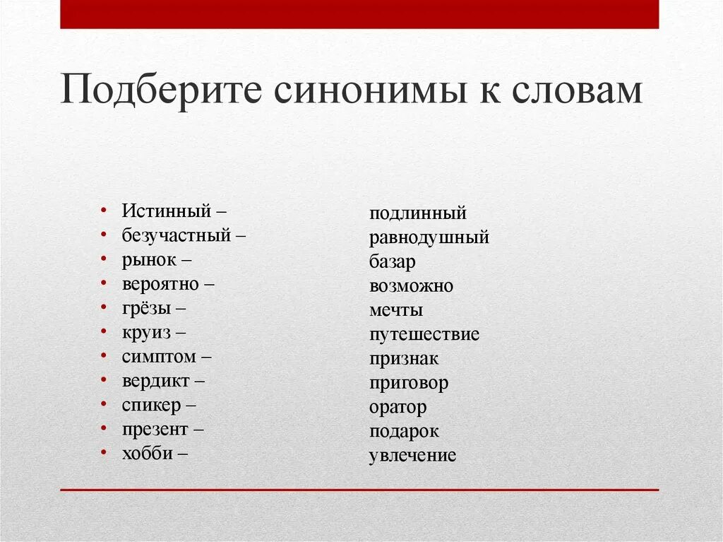 Подберите синонимы к словам.