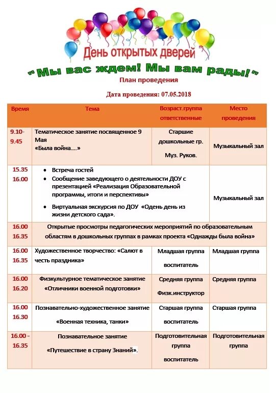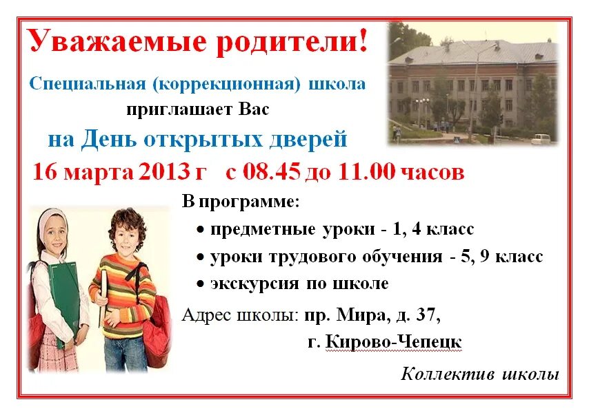 План дня открытых дверей в школе фото