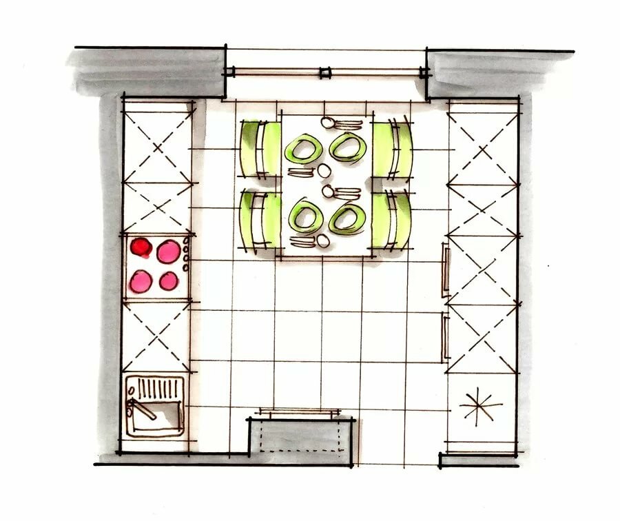 Планировка кухни эскизы.
