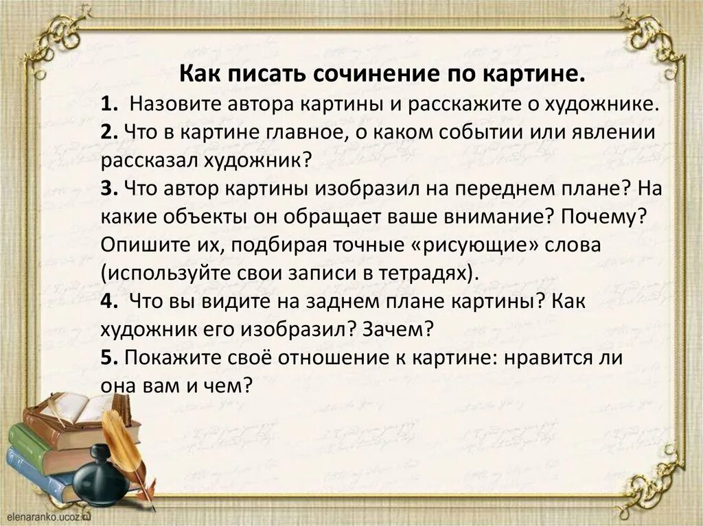Как писать сочинение по картине алгоритм.