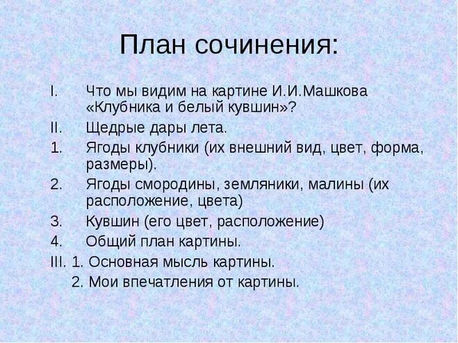 План сочинения по картине 3 класс.